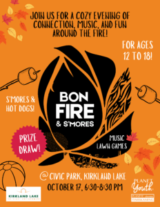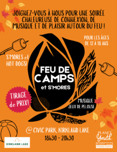 🌟 Événement gratuit pour les jeunes et les membres de la communauté, organisé par Planète Jeunesse Timiskaming et la Ville de Kirkland Lake.