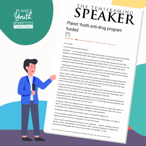 This Spring, Planet Youth Timiskaming (PYT) invited Steve Keller from Drug Free Kids Canada (DFKC) to give a series of presentations for both youth and parents across the district. These talks helped spark important conversations and fit right in with … En savoir plus