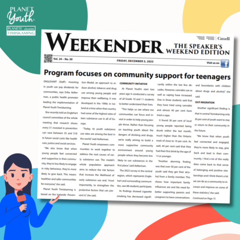 This Spring, Planet Youth Timiskaming (PYT) invited Steve Keller from Drug Free Kids Canada (DFKC) to give a series of presentations for both youth and parents across the district. These talks helped spark important conversations and fit right in with … En savoir plus